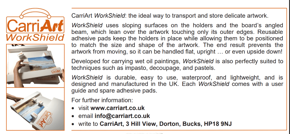 CarriArt WorkShield – ideal way to transport and store delicate artwork. Discount offered to members of LAGs. Visit www.carriart.co.uk or email info@carriart.co.uk for costs etc